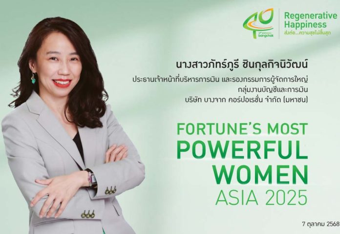 CFO บางจากฯ ติดอันดับ Fortune’s Most Powerful Women Asia 2025 ต่อเนื่องปีที่ 2 ตอกย้ำบทบาทผู้นำหญิงบริษัทพลังงาน
