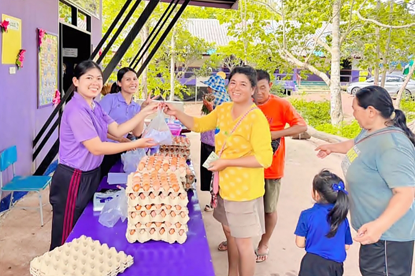 ส่วน ด.ญ.กรวรรณ โพธิวรรณา – น้องพอใจ ชั้น ป.4 เสริมว่า “เราแบ่งเวรดูแลไก่ทุกวัน เช้าให้อาหาร ทำความสะอาด ตอนบ่ายเก็บไข่ แล้วส่งขายผ่านสหกรณ์ โรงเรียนก็นำไปทำอาหารกลางวัน ส่วนที่เหลือขายให้ผู้ปกครอง ขายดีมากค่ะ เพราะเป็นไข่ที่พวกเราเลี้ยงเอง สดและปลอดภัยแน่นอน”