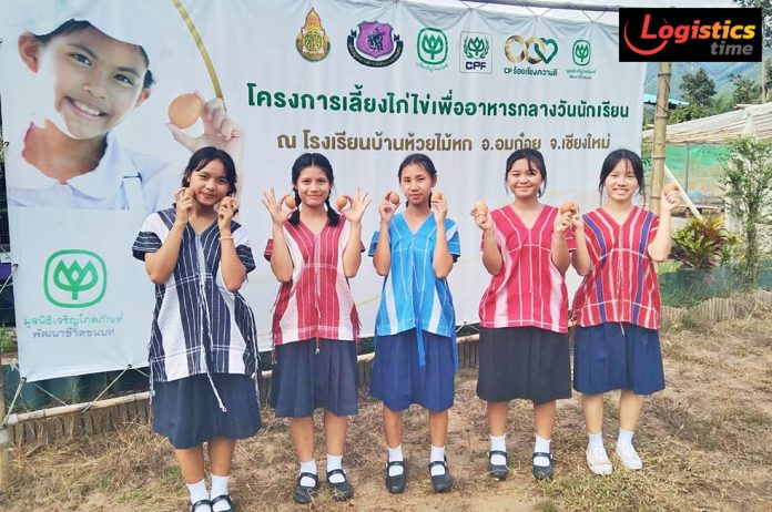 สำหรับ โรงเรียนบ้านห้วยไม้หก อ.อมก๋อย จ.เชียงใหม่ ที่อยู่ห่างตัวเมืองเชียงใหม่กว่า 300 กิโลเมตร การเข้าถึงอาหารไม่ง่ายนัก โรงเรียนจึงเข้าร่วมโครงการเลี้ยงไก่ไข่ฯ ตั้งแต่ต้นปี 2568 และมูลนิธิซีพียังช่วยสนับสนุนโครงการเกษตรพอเพียง สร้างโรงเรือนปลูกผักไฮโดรโปนิกส์ ภาคเรียนหน้าโรงเรียนจะเลี้ยงปลา หมู และกบ เสริมอาหารให้เด็กๆ และชุมชนรอบข้าง ผลผลิตไข่ไก่ เป็นทั้งอาหารกลางวันของนักเรียนทั้ง 192 คน และสำหรับนักเรียนพักนอน 93 คน ส่วนที่เหลือจำหน่ายให้ชุมชน และยังมีผู้บริจาคเงินจัดซื้อไข่ไก่ เพื่อให้ทางโรงเรียนมอบแก่กลุ่มเปราะบาง 100 ราย ทั้งผู้สูงวัย ผู้พิการ และผู้ยากไร้ ใน ต.ม่อนจอง ต.แม่ตื่ “ไข่ไก่” จึงกลายเป็นสัญลักษณ์ของการแบ่งปันอย่างแท้จริง