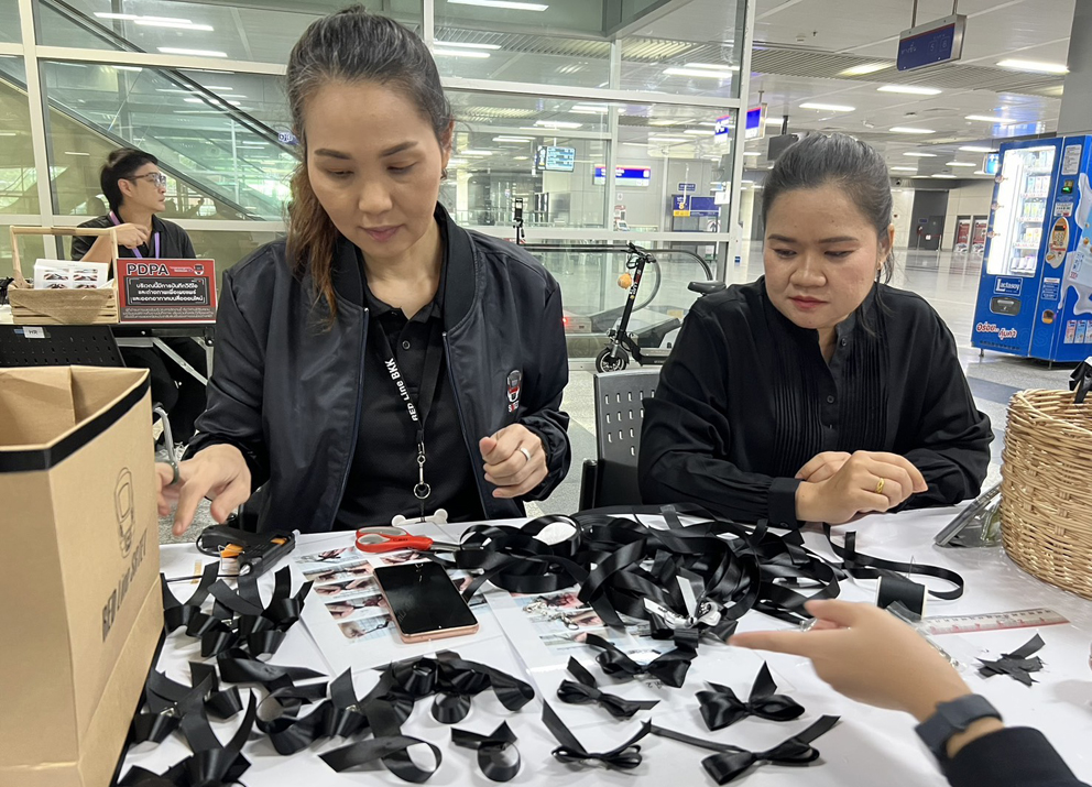 กิจกรรมนี้ จัดขึ้นเพื่อเปิดโอกาสให้ประชาชนทุกคนได้มีส่วนร่วมในการถวายความอาลัยและแสดงออกถึงความจงรักภักดี โดยบริษัทฯ ได้จัดเตรียมวัสดุอุปกรณ์สำหรับประดิษฐ์ริบบิ้นและน้ำดื่ม พร้อมทีมเจ้าหน้าที่ให้คำแนะนำและอำนวยความสะดวกแก่ผู้เข้าร่วมกิจกรรมทุกคน สำหรับริบบิ้นที่ประดิษฐ์เสร็จแล้ว จะถูกนำไปมอบให้แก่ประชาชน และผู้มาใช้บริการ เพื่อใช้ติดบนเครื่องแต่งกาย เป็นสัญลักษณ์แห่งความอาลัย และน้อมรำลึกถึงพระมหากรุณาธิคุณของพระองค์ท่านที่ทรงมีต่อพสกนิกรชาวไทย