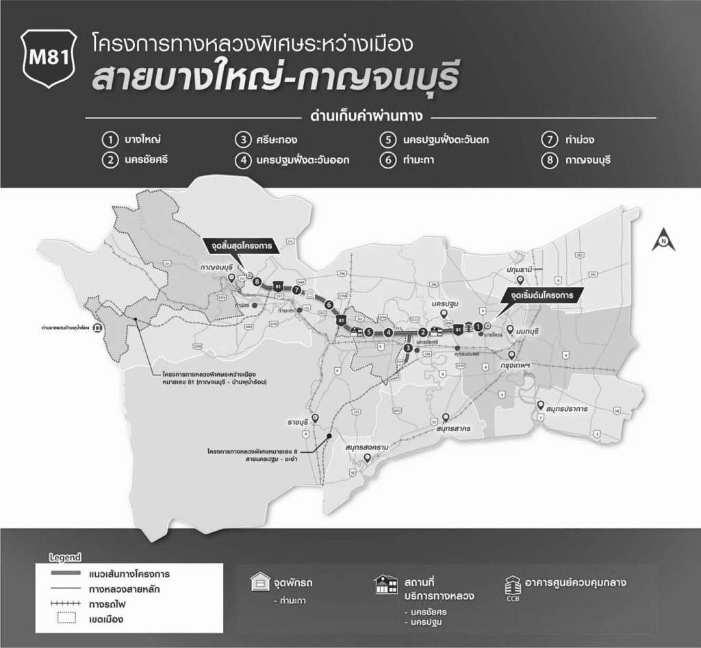 กรมทางหลวงเตรียมเปิดทดลองให้บริการทางหลวงพิเศษระหว่างเมือง สายบางใหญ่ – กาญจนบุรี (M81) ระยะทาง 96 กิโลเมตร ครบทุกด่าน โดยไม่เก็บค่าผ่านทางทุกวัน ตลอด 24 ชั่วโมง เริ่มวันที่ 31 ตุลาคม 2568 ตั้งแต่ เวลา 00.01 น. เป็นต้นไป เพื่อให้ประชาชนได้ทดลองใช้เส้นทางจริง และเดินทางสู่ภาคตะวันตกได้สะดวก รวดเร็ว และปลอดภัยยิ่งขึ้น โดยให้บริการแก่รถทุกประเภทที่ใช้มอเตอร์เวย์ได้