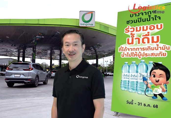 กลุ่มบริษัทบางจากเชิญชวนลูกค้าและประชาชนร่วมปันน้ำใจ ช่วยผู้ประสบภัยน้ำท่วม โดยลูกค้าที่ได้ รับแจกน้ำดื่ม 1.5 ลิตร จากการเติมน้ำมันในสถานีบริการน้ำมันบางจากทั่วประเทศที่ร่วมรายการ สามารถ ร่วมบริจาคน้ำดื่มให้กับผู้ประสบภัยน้ำท่วมที่ยังอยู่ในภาวะวิกฤต ตั้งแต่วันนี้จนถึง 31 ธันวาคม 2568 ด้วยการแจ้งความจำนงกับพนักงานหน้าลานในสถานีบริการ โดยบางจากฯ จะประสานงานกับหน่วยงานในพื้นที่เพื่อกระจาย น้ำดื่มไปยังผู้ที่ได้รับผลกระทบอย่างมีประสิทธิภาพ